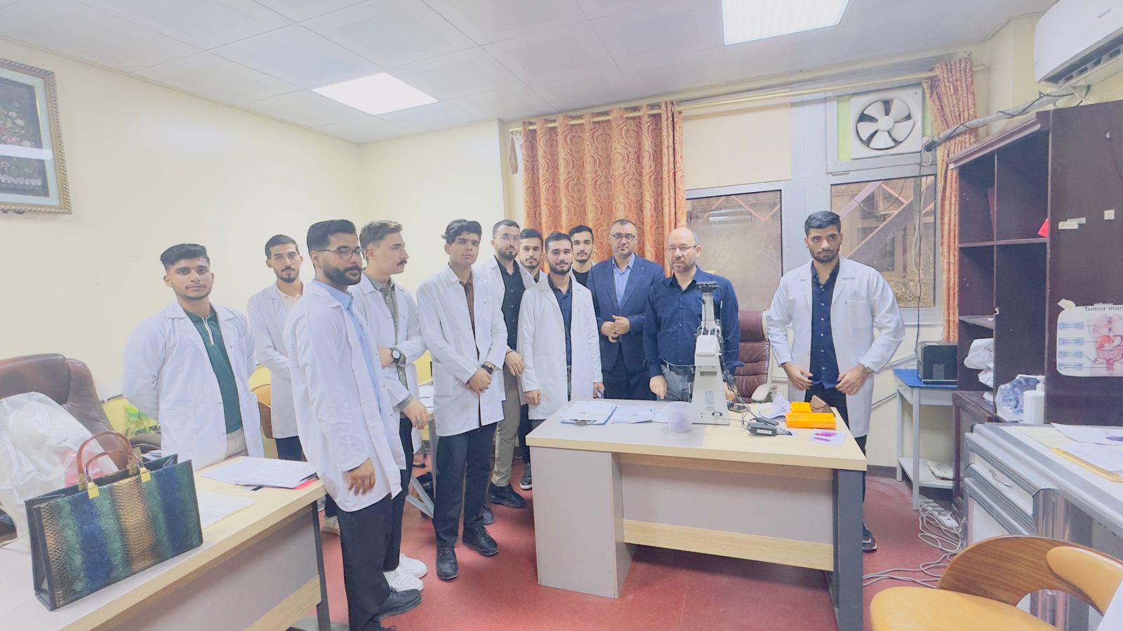 وقد استُقبل الوفد الجامعي بحفاوة من قبل كادر المستشفى مشكورآ المتمثل بالدكتور فارس لطفي ، الذي قدّم شرحًا علميًا مفصلًا عن سير العمل داخل المختبرات، مما أتاح للطلبة فرصة مهمة لاكتساب خبرة ميدانية تدعم مهاراتهم في المجال الأكاديمي والسريري.