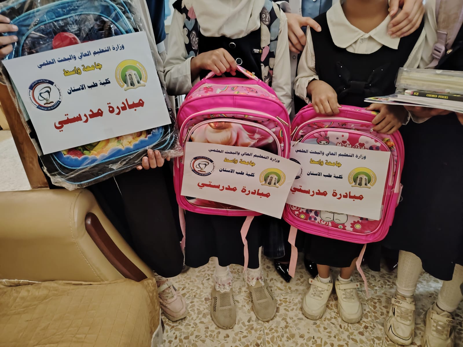 وتكون الوفد من مسؤول شعبة النشاطات الطلابية والسيد مسؤول وحدة العمل التطوعي و السيد مسؤول العيادات التعليمية في الكلية ونخبة من اطباء الاسنان و مسؤول شعبة الاعلام والاتصال الحكومي في الكلية وتهدف مبادة مدرستي الى توفير المستلزمات الدراسية للطلبة الايتام و المحتاجين في مدارس المحافظة من خلال تبرعات شخصية للوفد الزائر لتوفير بيئة دراسية علمية مع بدء العام الدراسي الجديد شهدت المبادرة ترحيبا واسعاً من قبل ادارة المدرسة لما لها من اثار ايجابية على نفسية الطبقة المخدومة وكذلك حث الجهات الاخرى على ثقافة العمل التطوعي ، ودوره في دعم المبادرات المجتمعية.